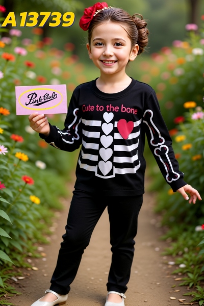 A13739-WH-(8-12)เสื้อลายกระดูก L/S ขาว(8-12)