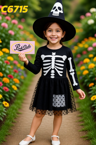 C6715-BLk-L-XL-XXLชุดกระดูก หมวกริบบิ้น l-xxl