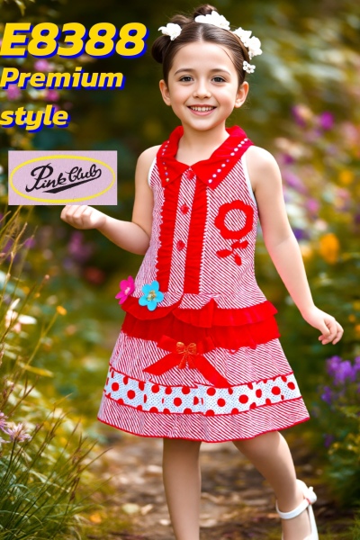 E8388ชุดเด็กโตผ้าริ้วโบติดดอกไม้