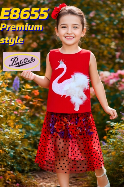 E8655ชุดเด็กโตโปรงคลุมปักหงส์