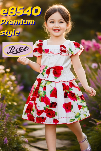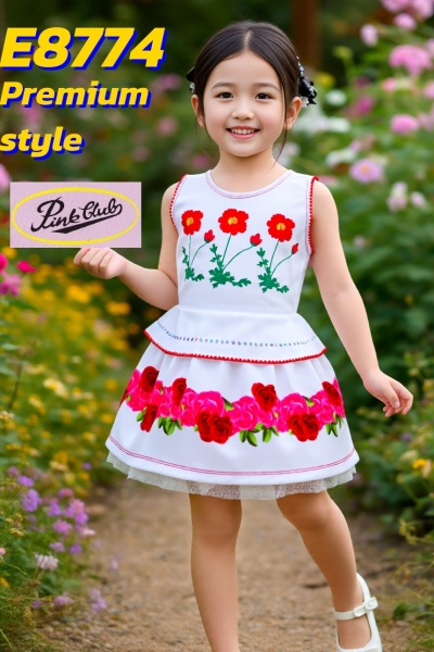 E8774ชุดเด็กแฟชั่นดอก+มงกุฎลีลาวดี