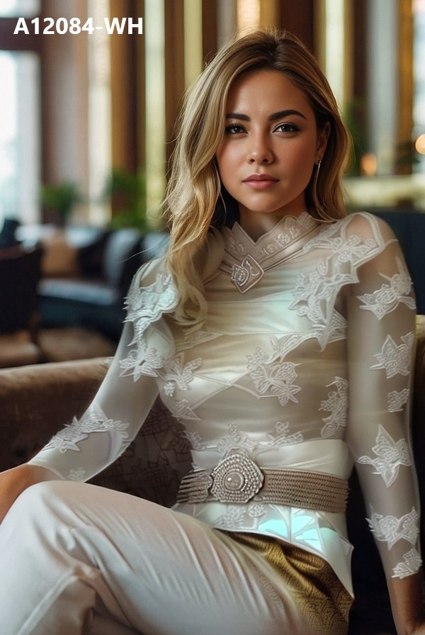 A12084-WH-XXLเสื้อลูกไม้HISOยาว(ขาว)XXL