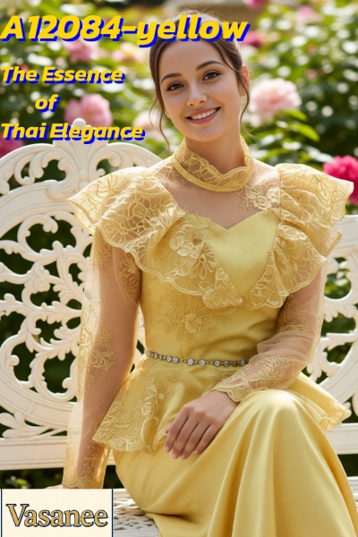A12084-yellow-3XLเสื้อลูกไม้HISOยาว(เหลือง)3XL