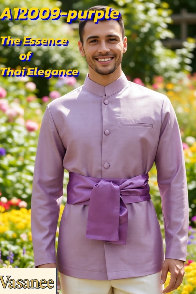 A12009-purple-Sเสื้อไหม-ยาว สีม่วงเข้ม S
