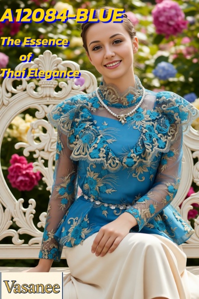 A12084-BLUE-XXLเสื้อลูกไม้HISOยาว(ฟ้า)XXL