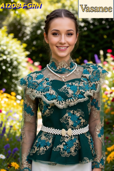 A12084-GRN-XLเสื้อลูกไม้HISOยาว(เขียวเข้ม)X