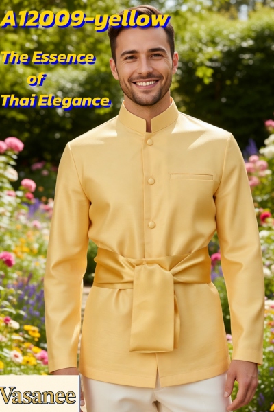 A12009-yellow-Lเสื้อไหม-ยาว สีดอกคูน L