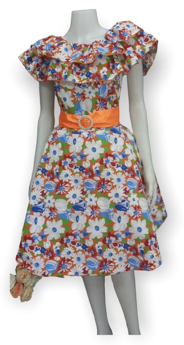 P6120-ORN-FREEชุดทองกวาว(สั้น)แขนตุ๊กตา-ส้ม