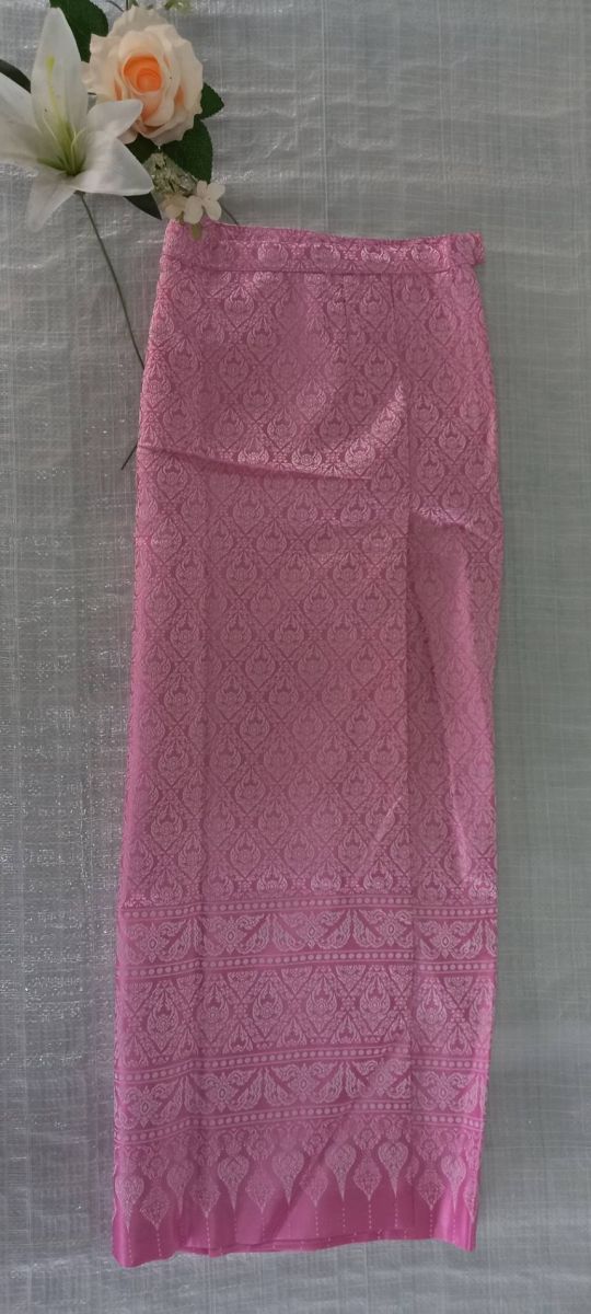 A11667-ไหมลายชมพู-Lกระโปรงไหมลายซิบ ชมพูL