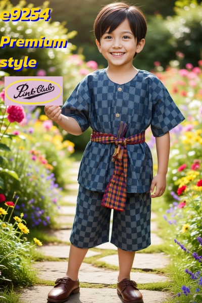 E9254-BLUE-(1-3)ชุดยีนส์หมากรุก(1-3)