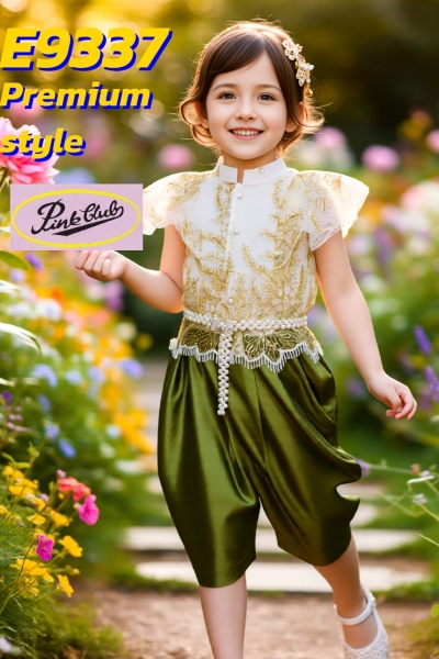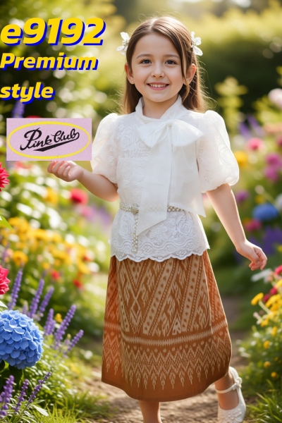 E9337-All-(8-12)ชุดคุณหญิงเสื้อลูกไม้ปัก(8-12)