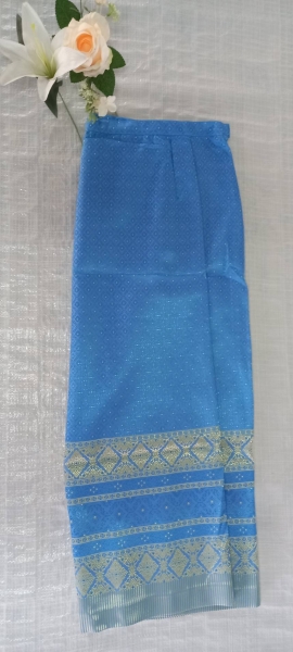 A11667-ไหมลายฟ้า-XLกระโปรงไหมลายซิบ ฟ้า XL